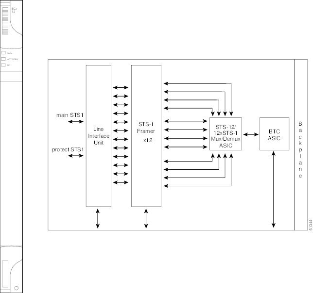 Figure 3-1 shows the EC1-12 faceplate and a block diagram of the card.