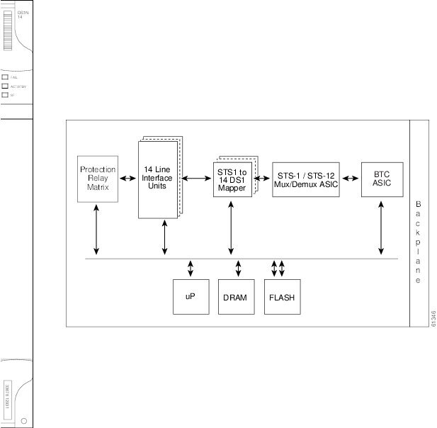 Figure 3-3 shows the DS1N-14 faceplate and a block diagram of the card.
