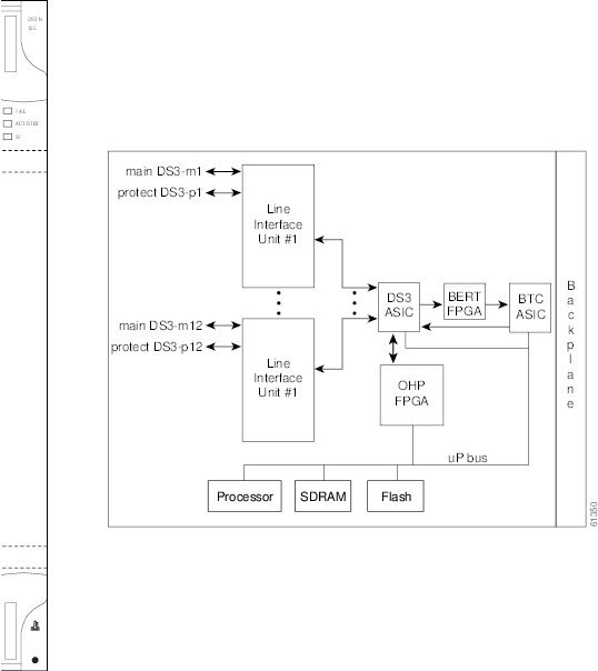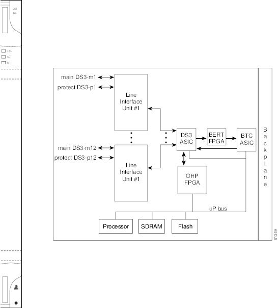 Figure 3-4 shows the DS3-12 faceplate and a block diagram of the card.