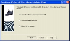 Client firmware, drivers, utilities and security modules are easily installed using the Cisco Aironet Wireless LAN Client Adapter Installation Wizard for Microsoft Windows operating systems. The wizard can run in an interactive mode or in an automated "silent mode" without user interaction, triggered by existing IT software distribution tools. The wizard image file is a self-extracting executable (.exe) file (Figure 7).