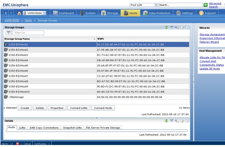 Verify that all the hosts shown under the "Hosts" tab and their "VDS Status" is "Up" as shown in Figure 217.