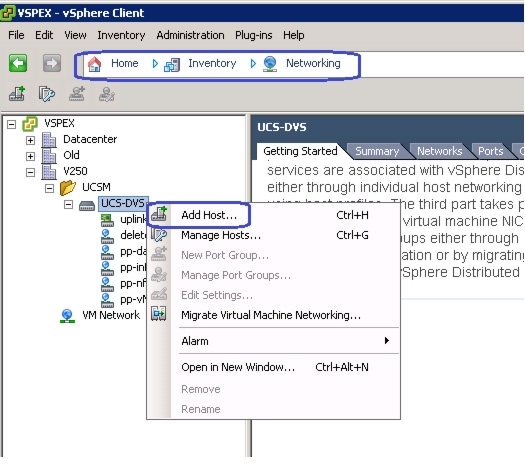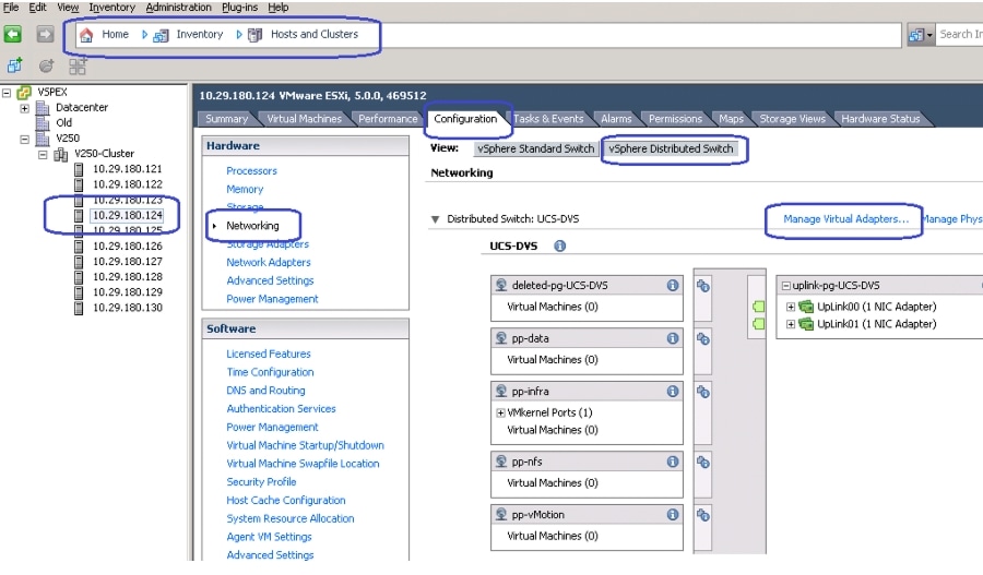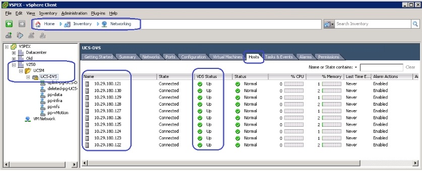 Figure 217 UCS-DVS Showing Hosts Details in vCenter