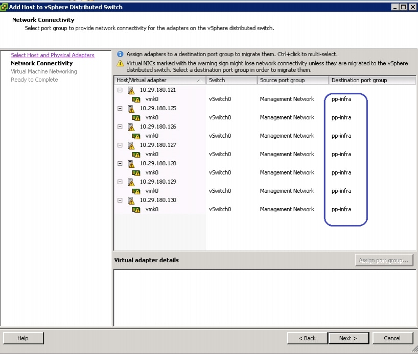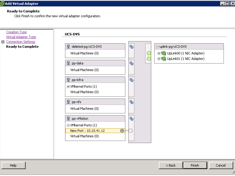 Repeat steps 1 to 6 for the storage access vmkernel virtual interface. On step 4, you need to select "pp-nfs" port profile and enable "vMotion".