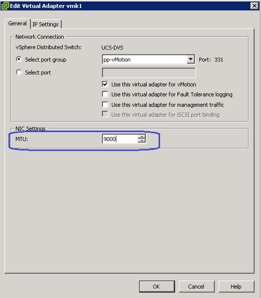 Figure 226 Changing the MTU Size for the VMkernel Interface