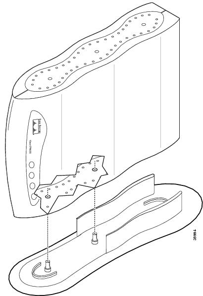 The Cisco CVA122/CVA122E Cable Voice Adapter can be placed on its side on a desktop or other stable, flat surface, using the support stand that is shipped with the unit. To mount the cable voice adapter on its side, use the following procedure: