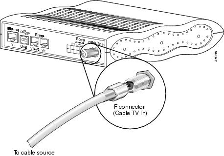 CautionTo ensure compliance with FCC limits, connection to the cable system must be made with a high-quality, shielded cable. If the quality or general condition of the coaxial cable at the subscriber site is in question, Cisco recommends that you replace the coaxial cable. For more information on the effects of substandard cabling on the cable voice adapter installation, see the "Cabling" section.