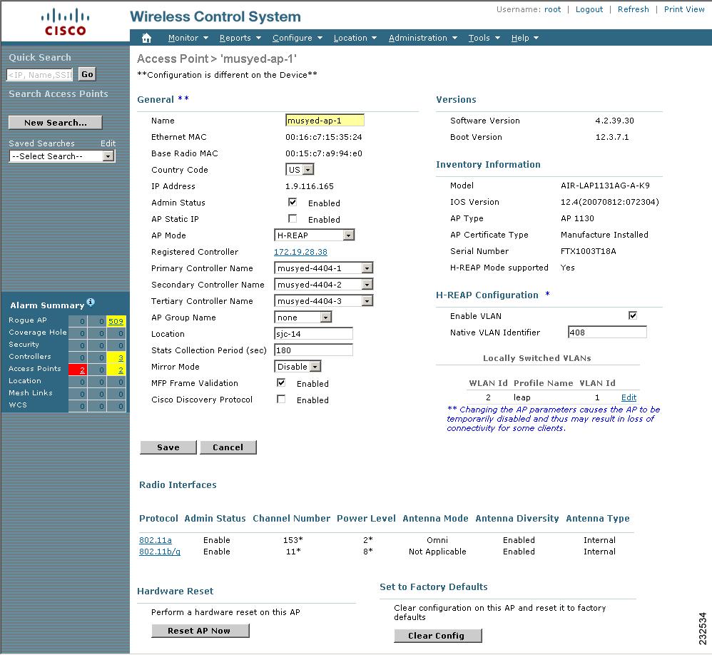 The last parameter under Inventory Information indicates whether this access point can be configured for hybrid REAP. Only the 1130AG and 1240AG access points support hybrid REAP.