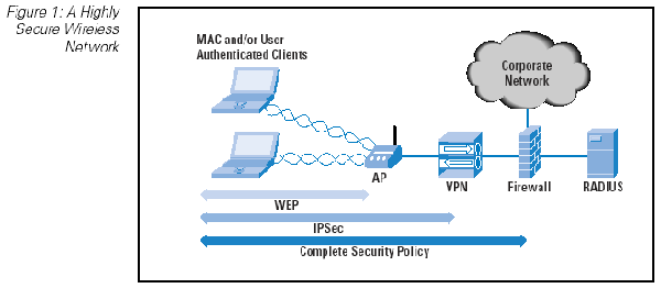 要成為高度安全的網路環境,最好是將存取設備與現有的有線網路分開,使用獨立的交換器網路,來作為無線網路的骨幹,或是透過虛擬私有網路( VLAN )的方式,使其不會導引路徑到既有的有線網路,兩者之間須安裝虛擬私有網路( VPN )設備,其後再加裝防火牆( Firewall ),使出入無線網路的流量,都被防火牆及 VPN 所過濾。