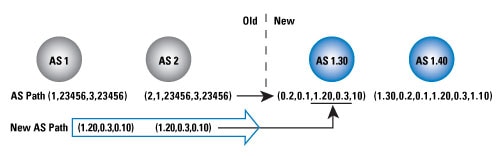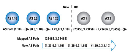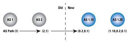 What is the inventory of concerns that need to specifically addressed in the transition to these 32-bit AS Numbers? Obviously there is a need for some changes to the routing protocol, and an ordered interdomain transition is unrealistic to expect. More reasonable is an expectation of a piecemeal transition of domains, where individual domains transition their BGP platform to supporting 32-bit ASs in their own time. Domains that are currently using 16-bit ASs may have less reason to undergo an early transition to 32-bit AS support, whereas those domains that are assigned a nonmappable 32-bit ASN will find that they have to support 32-bit ASNs from the outset. 32-Bit Changes to BGPBGP has two major parts within its protocol: opening up a BGP conversation with a peer BGP speaker, and then the transfrerring of protocol objects that describe reachability of address prefixes and associated attributes of these address prefixes. Both parts include AS Number components, and in considering changes to the current protocol, both parts of the protocol require some change. The message objects that need to be considered here are, therefore, the BGP OPEN message and the BGP UPDATE message. The changes to BGP create a “NEW” BGP implementation that is capable of supporting a 32-bit ASN environment. The essential task of the changes is to define mechanisms that all NEW BGP speakers use to speak to each other and pass all ASN values in 32-bit fields. However, the Internet is way too large to set up a “flag day” at which point the entire collection of BGP speakers will undertake a switch from “OLD” BGP to NEW BGP. Accordingly, it is also necessary to define protocol interactions in NEW BGP where the transition in the Internet will be gradual and essentially uncoordinated. NEW BGP speakers will have to set up sessions with OLD BGP speakers, and of course OLD BGP speakers will also be peering with other OLD BGP speakers. The information associated with 32-bit AS paths must be passed across sections of the network that normally support only 16-bit AS paths. In other words, 32-bit AS information needs to be passed to OLD BGP speakers and between OLD BGP speakers. The general approach adopted for transition is preserve AS path length information across the OLD and NEW BGP boundaries, while recognizing that some 32-bit AS information cannot be cleanly mapped into a 16-bit AS path. In order to preserve 32-bit information—a necessary step to prevent loop formation for 32-bit ASs—the 32-bit information is preserved across OLD transit paths and restored upon reentry into NEW BGP realms (Figure 11). Opening a BGP SessionThe proposed approach is to initiate a NEW BGP session in a mode that is compatible with the OLD BGP protocol, and also inform the remote peer of its capability to conduct a NEW BGP conversation if the remote peer is also a NEW BGP speaker. NEW BGP speakers who open a peer session with an OLD BGP peer will ignore the NEW capability and operate their BGP peer session in OLD mode. A NEW BGP peer will respond positively to the NEW capability, and that BGP session can then operate in NEW mode. The BGP OPEN message includes a fixed-length 16-bit My_AS field as well as potentially containing a capability query as part of the Optional Parameters section. In order to ensure that NEW and OLD speakers can communicate, this 16-bit My_AS field needs to be preserved in NEW BGP even when the Optional Parameters section includes the capability to undertake a NEW peering session. This may appear contradictory in the first instance, because the OPEN message then contains both a 16-bit ASN and a 32-bit AS Capabilities Query. The mechanism proposed for the OPEN message varies according to whether the NEW speaker is using a mappable ASN drawn from the original pool (that is, with a My_AS number in the range 0.0 through 0.65535), or it is using a number drawn from a higher-numbered 32-bit number block. In the first case the OPEN message would use the 16-bit mapped value in the My_AS field (dropping out the zero-valued high-order 16 bits of the AS value), whereas in the second case the BGP speaker would use for My_AS a special 16-bit value that is reserved for this purpose (AS 23456). In both cases the Optional Parameter section would include a capability code to indicate that the local BGP speaker can support 32-bit ASNs (Capability Code 65). The side effect is that from the perspective of OLD BGP domains AS 23456 may appear to be connected to the interdomain network in many different locations. From the OLD BGP realm this does not present a protocol problem, although, as always, there is the potential here that this repeated use of AS 23456 as a 32-bit AS substitution token may create a somewhat confusing BGP view of the Internet from the perspective of the OLD BGP world. The capability exchange uses a protocol described in RFC 3392. The NEW BGP speaker adds an optional capability field to the OPEN message. The 32-bit AS capability code 65 carries as its capability value the local 32-bit local ASN value. For a NEW peer this capability value is to be interpreted as the actual AS of the remote side, on the basis that the My_AS field in the body of the OPEN is either a truncation of the local 32-bit AS value (in the case of mappable 32-bit AS values), or the special value of AS 23456. The BGP UPDATE MessageFor a NEW BGP session (32-bit peering with 32 bits) the changes to the protocol are the use of 32-bit ASNs in the AS_PATH attribute of UPDATE messages. All 16-bit AS values are padded with a zero high-order 16 bits. If the AGGREGATOR attribute is used, it is similarly carried as a 32-bit value. So in the 32-bit peering, all 16-bit information is carried in mapped 32-bit ASNs (Figure 12). In this way AS path length is preserved without change when translating 16-bit AS information into the 32-bit domain. The next case is where an OLD BGP peers with a NEW BGP. We have already seen the simple case where the inf