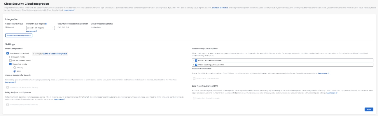 From the Integration tab in the Cisco Security Cloud interface, enable any one of the following three options.