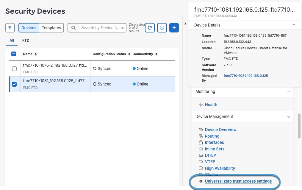 Universal ZTNA supports both remote and on-premises users. On-premises users access a trusted network using a Secure Firewall Threat Defense device. Remote users access a trusted network through the cloud-based Secure Access service, which evaluates policies and proxies the user traffic securely in the cloud.