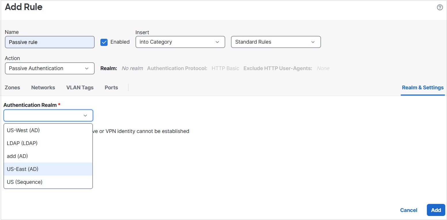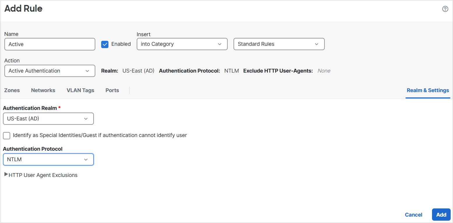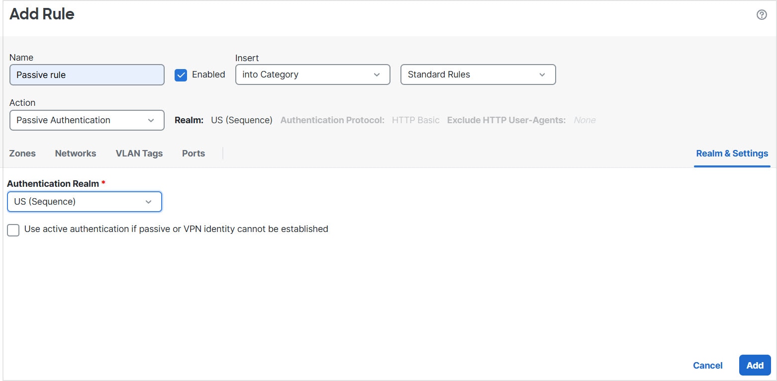 After you configure one or more identity policies, you must associate one identity policy with your access control policy. When traffic on your network matches the conditions in your identity rule, the system associates the traffic with the specified realm and authenticates the users in the traffic using the specified identity source.