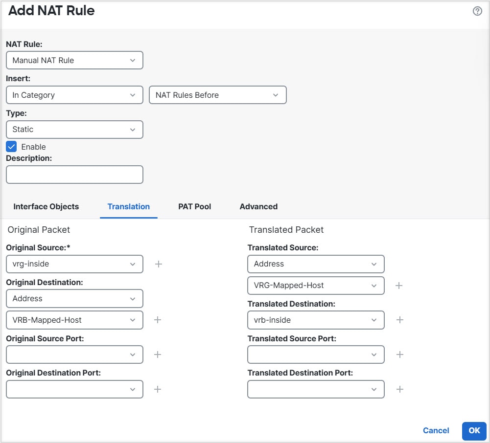 Though NAT rule leaks traffic from one virtual router to another, to ensure correct routing, we recommend that you configure a static route leak between these virtual routers for the translated traffic. Without the route leak, sometimes the rule may not match the traffic you expect it to match, and the translation may not be applied.