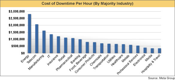 This figure illustrates a breakdown of the cost of network downtime per hour by various industries. Imagine how quickly these numbers could increase for a customer waiting for a shipment of equipment that is covered under a typical warranty where parts are shipped to the customer within 10 business days. Having a service contract that provides next-day or four-hour dispatch options can significantly reduce the network downtime costs.