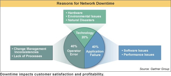 Technology failure is the reason for network downtime only 20% of the time. Other reasons are operator error (40%) and application error (40%). This statistic shows the overwhelming need for technical support services that cover operational requirements.
