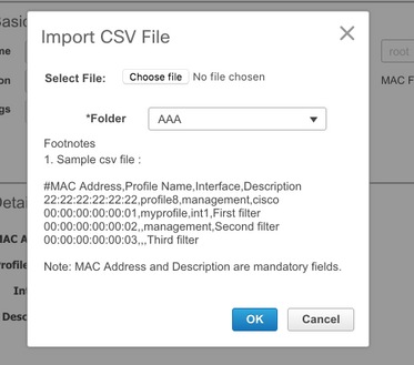 إذا كانت هناك حاجة إلى إستيراد كميات كبيرة، الرجاء النقر فوق الزر المحاط بالأحمر، واتبع قالب المثال لتبويبات معلومات نقطة الوصول التفصيلية كملف CSV ليتم إستيراده.