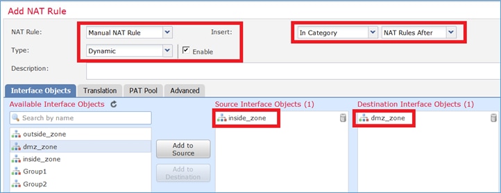الخطوة 1. أضف قاعدة NAT ثالثة وقم بتكوين متطلبات كل مهمة كما هو موضح في الصورة.