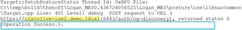 2020-04-09 11:06:42,176 DEBUG [Thread-7979][] cpm.nsf.session.impl.SessionCache -::::- Returning for session 0A3E946C000000896011D045 data Attrs: {SavedUserNames=[bob@example.com], Acs.LastStepTime=1586423202174, Acs.AD-User-Qualified-Name=bob@example.com, Acs.AD-User-Resolved-DNs=CN=bob,CN=Users,DC=example,DC=com, Acs.StepData=[110=EXAMPLE, 111=bob@example.com, 112=example.com, 113=example.com, 115=example.com, 116=EXAMPLE], Acs.AD-Log-Id=[1585911138/4778, 1585911138/4779], __IntIdGrps__=[Ljava.lang.String;@6d3c29b5, IdentityGroup.Description=[Ljava.lang.String;@3fca88fb, EXAMPLE.ExternalGroups=S-1-5-21-875452798-754861120-3039794717-513, Acs.AD-Groups-Names=example.com/Users/Domain Users, Acs.AuthenCPMSessionID=0A3E946C000000896011D045, Acs.IsMachineAuthentication=false, InternalEndpoint.IdentityGroup=[Ljava.lang.String;@6daf4c5, IDStoreUserQueryCache=[EXAMPLE#bob@example.com], Acs.CurrentIDStoreName=EXAMPLE, Acs.AD-User-Join-Point=EXAMPLE.COM, Acs.Step=[24432, 24325, 24313, 24319, 24323, 24355, 24416], Acs.CustomerMessageDuplicator=, Network Access.WasMachineAuthenticated=false, IdentityGroup.Name=[Ljava.lang.String;@570ab37a, Acs.StepDataStart=110, Acs.AD-User-DNS-Domain=example.com, Network Access.AuthenticationMethod=4, Acs.AD-User-Resolved-Identities=bob@example.com, InternalUser.IdentityGroup=[Ljava.lang.String;@51a6caed, Acs.AuthenticationMethod=4, Acs.AD-User-NetBios-Name=EXAMPLE, Normalised Radius.RadiusFlowType=0, Network Access.AuthenticationIdentityStore=EXAMPLE, EXAMPLE.IdentityAccessRestricted=false, Acs.AD-User-SamAccount-Name=bob}