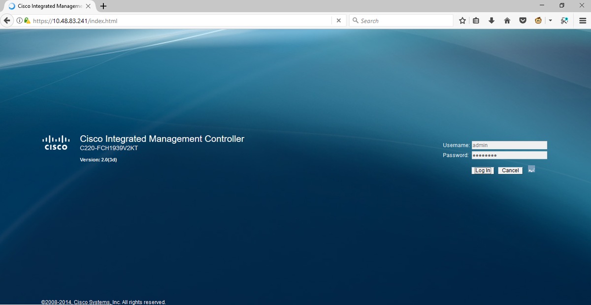 تعرض هذه الصورة واجهة المستخدم الرسومية (GUI) ل CIMC قبل تسجيل الدخول.