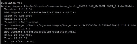 CBS350#sh verالخطوة 9. تحقق من معلومات البرنامج الثابت. يجب أن تعرض الصفحة ملفي الصور القديم والجديد على السواء ولكن يجب أن تشير إلى أن ملف الصورة القديم سيكون غير نشط بعد إعادة التمهيد وأن ملف الصورة الجديد سيكون نشطًا بعد إعادة التمهيد.