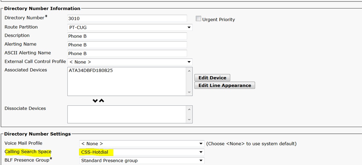 - تعيين CSS على جهاز ATA (DN - Line CSS)