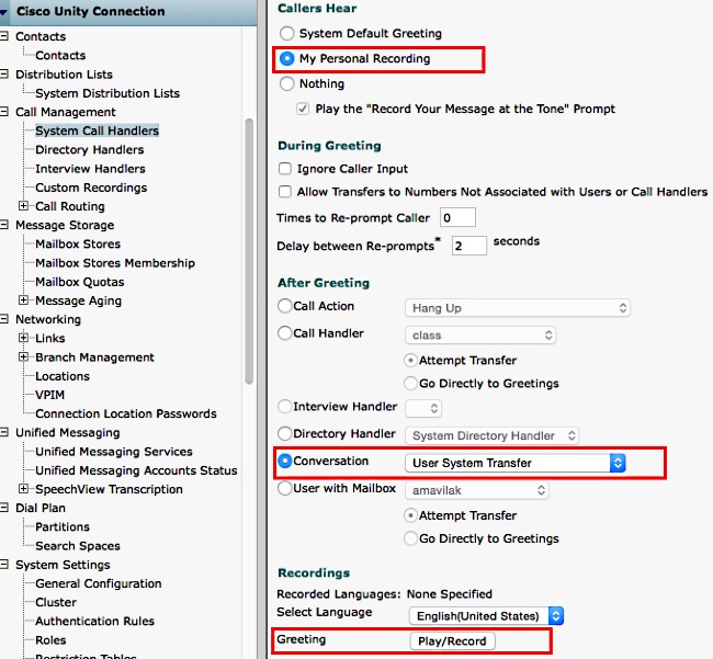 - قم بإنشاء مستخدم على CUC واستخدم أي ملحق. يجب على المتصل إدخال هذا الملحق ورقم التعريف الشخصي (PIN) الخاص بالملحقات للمصادقة.