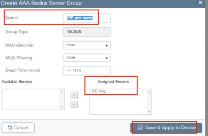 انتقل إلى التكوين > التأمين > AAA > الخوادم / المجموعات > RADIUS > مجموعات الخوادم > + إضافة.