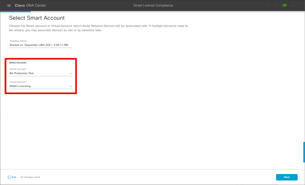 في هذه الخطوة التالية حدد الحساب الذكي والحساب الظاهري الذي تريد إستخدامه. طقطقت بعد ذلك أن يباشر.