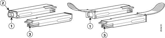 For QSFP+ or QSFP28 transceiver modules equipped with a pull-tab, hold the transceiver so that the identifier label is on the top. |
