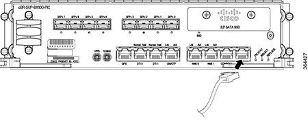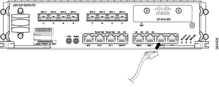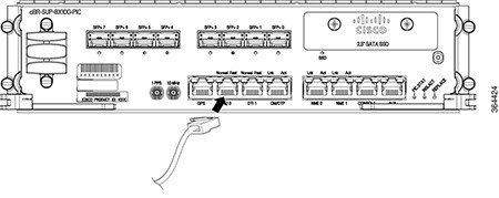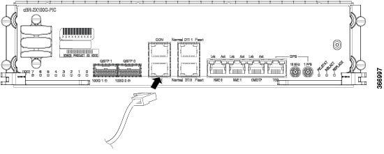 Remove the dust plug from the SFP+ module optical bores on the Supervisor PIC. |