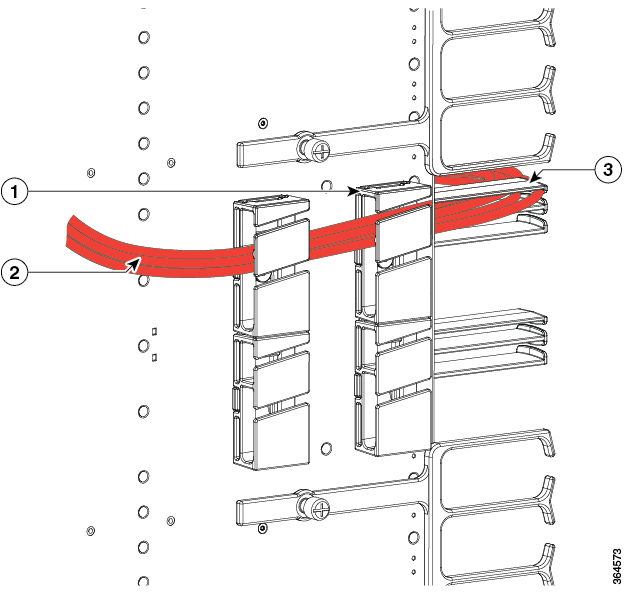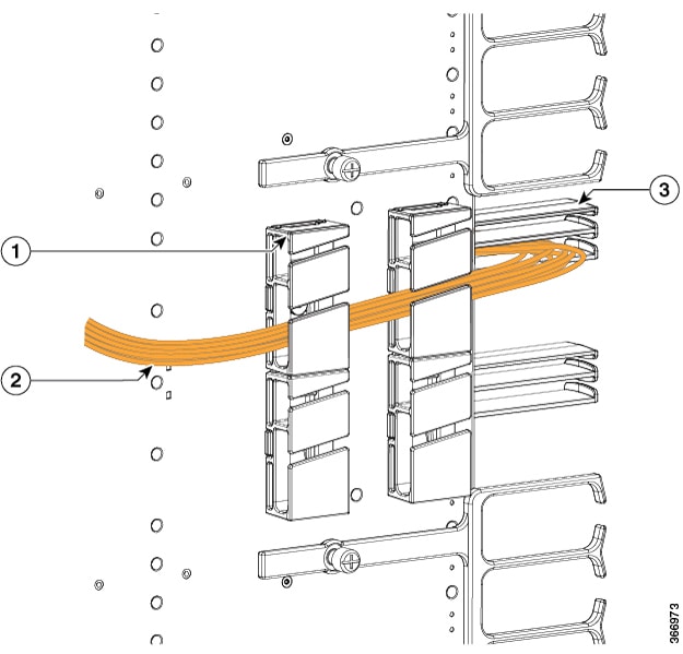 The Supervisor PIC cable management bracket is shipped separately in the chassis accessory kit. It has a smaller slot for fiber-optic cables and a larger slot for the RJ-45 cables.