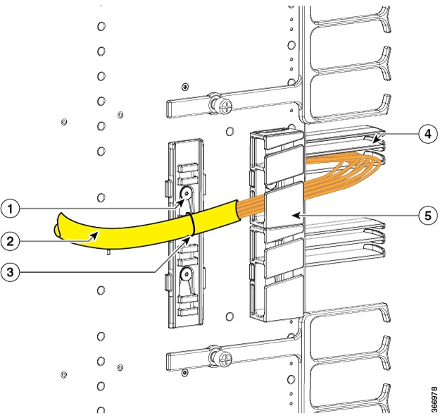 Insert the 1-to-4 breakout fibers into the QSFP module on SUP in slot 4 and slot 5 respectively. |