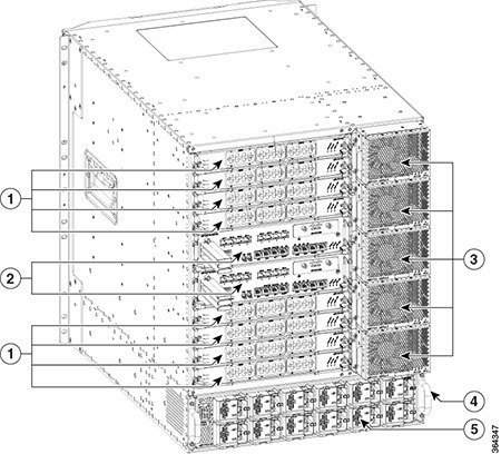 The Digital Midplane provides connectivity between various components in the chassis. It provides the interconnect between the supervisors and all the interface slots. This interconnect includes differential pairs used for ESI data plan links, Gigabit Ethernet/Ten Gigabit Ethernet control plane links, timing and single-ended signals used for status and control functions. It also has connections for status and control of PICs, the power shelf, and the fan modules.