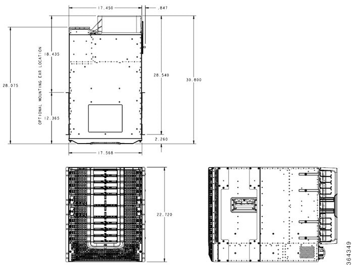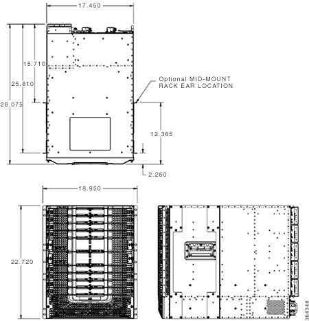 The below image shows the basic dimensions of the Cisco cBR-8 chassis.