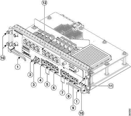 The front card modules plug into the Digital Midplane and the associated Physical Interface Card (PIC) plugs into the rear of the chassis. All permanent connections to the Cisco cBR-8 chassis are made at the rear.