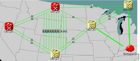 NTP-G82 Customize the CTC Network View—Complete this procedure as needed to create domains and customize the appearance of the network map, including specifying a different default map, creating domains, consolidating links in the network view, selecting your own map or image, and changing the background color.