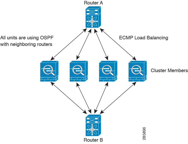 等价多路径路由(仅适用于路由防火墙模式)- 上游和下游路由器使用等价静态或动态路由在设备之间执行负载均衡。