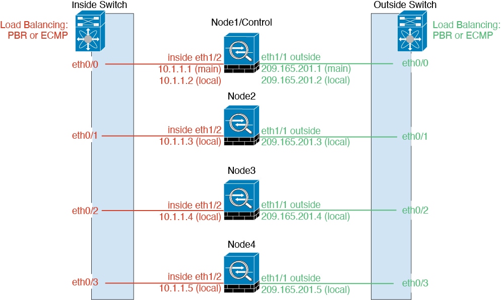 用于 Cisco Secure Firewall 3100/4200 集群的独立接口模式。 |