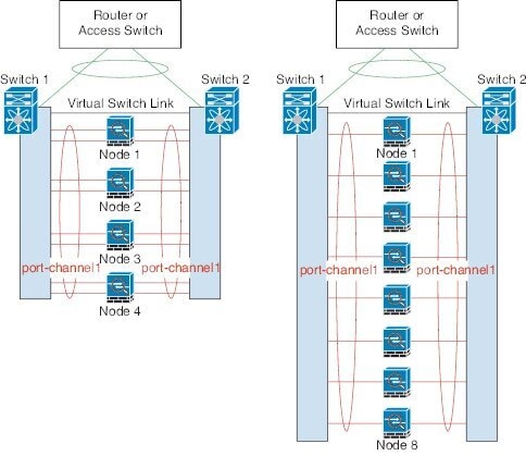 在交换机上,我们建议使用以下其中一种 EtherChannel 负载均衡算法:source-dest-ip 或 source-dest-ip-port (请参阅思科 Nexus OS 和思科 IOS-XE port-channel load-balance 命令)。请勿在负载均衡算法中使用关键字 vlan,否则会导致传输到集群中的设备的流量分摊不均。