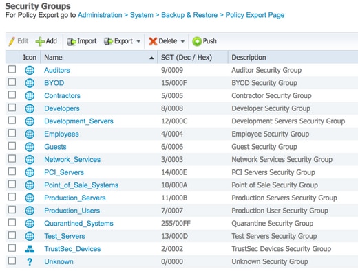 WorkCenter > TrustSec > Komponenten > Sicherheitsgruppen
