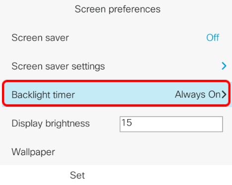 Schritt 5: Drücken Sie die Kreis-Navigationstaste auf Ihrem IP-Telefon, um die Einstellungen für die Beleuchtungs-Timer anzupassen.