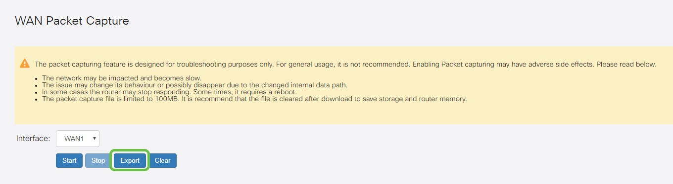 Dieser Artikel enthält die Schritte zur Durchführung der Paketerfassung über die Debugseite für die Paketerfassung auf dem RV340 WAN-Port.