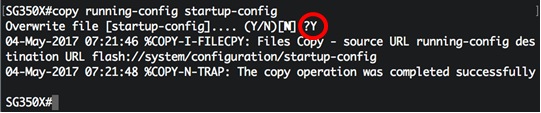 Schritt 7: (Optional) Drücken Sie auf der Tastatur auf Y für Yes (Ja) oder N für No (Nein), sobald die Aufforderung „Overwrite file [startup-config]....“ angezeigt wird.