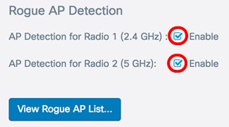 Schritt 3: Aktivieren Sie im Abschnitt "Erkennung nicht autorisierter APs" die Kontrollkästchen der Funkschnittstellen, die die Erkennung nicht autorisierter APs aktivieren sollen. Dies ist standardmäßig deaktiviert. In diesem Beispiel sind beide Funkschnittstellen aktiviert.