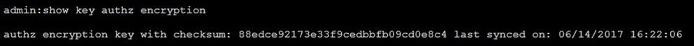 Admin kann mithilfe der CLI Authentifizierungs- und Verschlüsselungsschlüssel anzeigen. Der Hash des Schlüssels wird statt des ursprünglichen Schlüssels angezeigt.