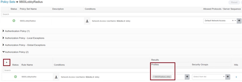 Die Konfiguration der Richtlinie hängt von der Entscheidung des Administrators ab. Für dieses Dokument werden die Bedingung "Netzwerkzugriff - Benutzername" und das Standardgeräteverwaltungsprotokoll verwendet. Es ist zwingend erforderlich, dass in der Autorisierungsrichtlinie sichergestellt ist, dass das unter der Ergebnisautorisierung konfigurierte Profil ausgewählt wird. Dadurch werden die korrekten Attribute für die Rückgabe an den WLC festgelegt.
