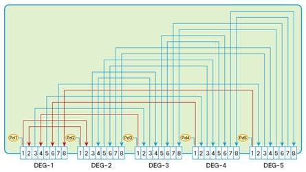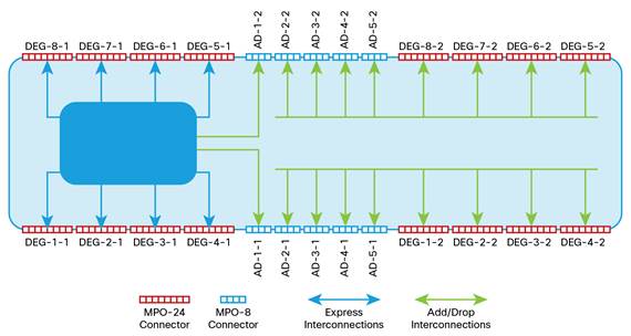 ROADM node architectures built with Cisco nLight ROADM feature a modular approach to degree interconnection, offering an incremental payment model combining just two units: a 5-Degree Patch Panel Module (product number: NCS2K-MF-DEG-5=) and a 4-Degree Upgrade Patch Panel Module (product number: NCS2K-MF-UPG-4=) (Figure 3).
