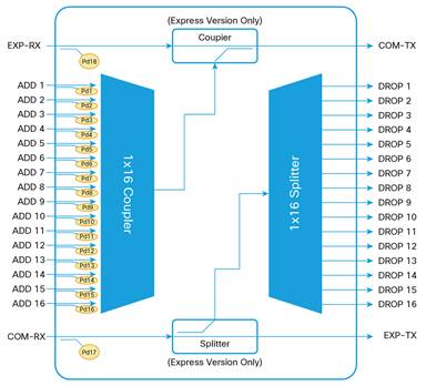 ● 1 x 16 colorless flex spectrum add-drop plus express module