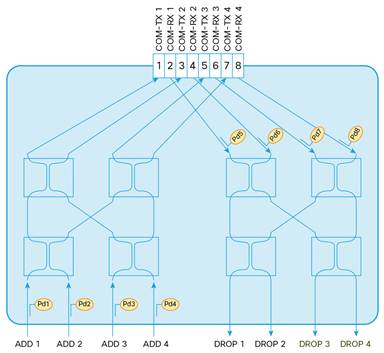 ● 4 x 4 colorless 0mnidirectional flex spectrum (COFS) add-drop module