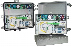 The node can operate at an output level of 117 dBμV in the forward path and can be configured electronically for quick initial setup or adjustments that are needed as network requirements shift. All settings can be done without interrupting service, an especially important capability in networks that deliver interactive services such as voice over IP (VoIP) and high-speed data. The node is equipped with an interface that allows configuration through a handheld programmer terminal or by connecting to a standard PC. This interface allows the settings to be stored and reapplied to maintain a streamlined configuration.